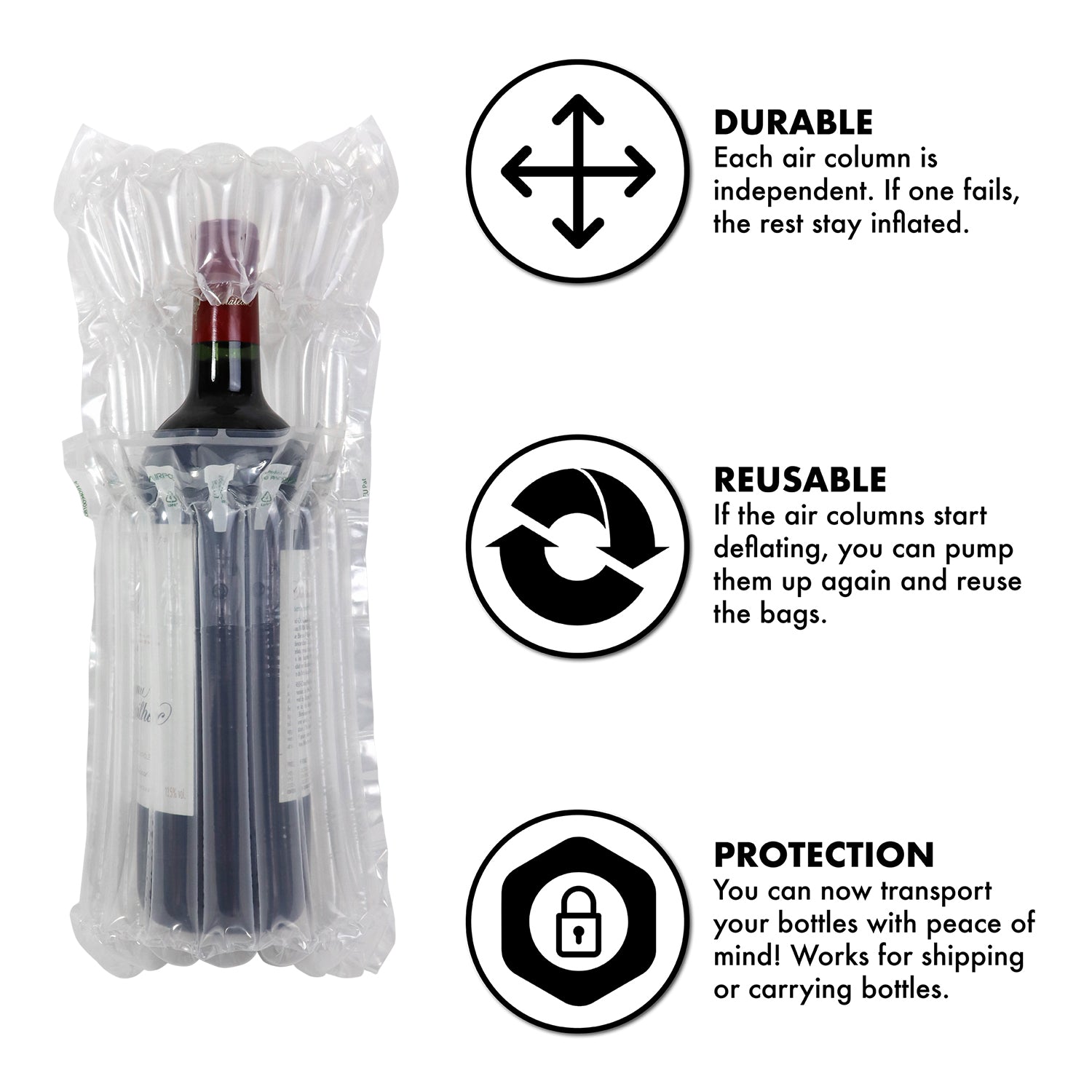 - SUPERIOR PROTECTION: These air bottle wraps will keep your glass bottles or fragile items safe! Each air column is independent so if one fails, the rest stay inflated. Designed to keep your bottles safe until they have reached their destination.